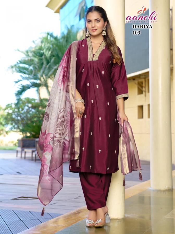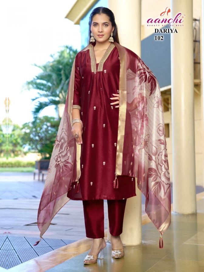 buy aanchi dariya crystal silk readymade suit latest catalogue 2025