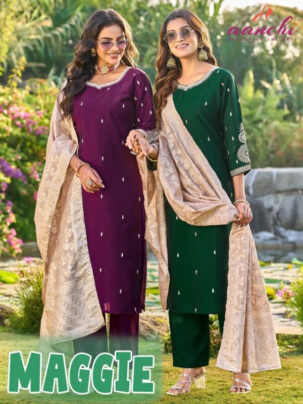 Upgrade your ethnic wardrobe with the elegant Aanchi Maggie Crystal Silk Jacquard Designer Kurti Bottom With Dupatta for Women, a perfect blend of traditional craftsmanship and modern style. This beautifully designed printed kurta set with dupatta features vibrant colors, intricate ethnic motifs, and premium-quality fabric that offers both comfort and style. Ideal for festivals, weddings, parties, casual outings, and traditional occasions, this stunning outfit enhances your graceful look effortlessly.