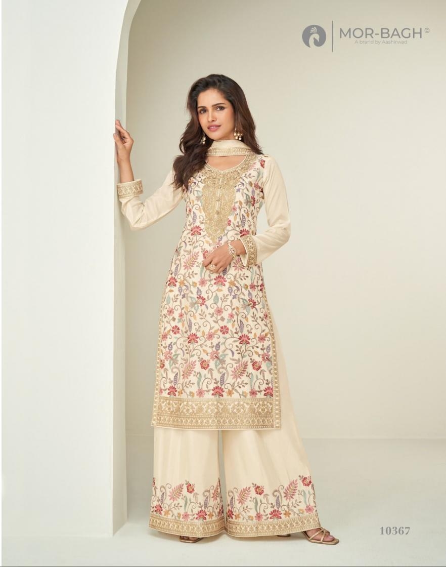 buy aashirwad mor bagh sakshi series 10366 to 10367 chinon silk readymade plazzo style suit in wholesale surat latest catalogue 2025