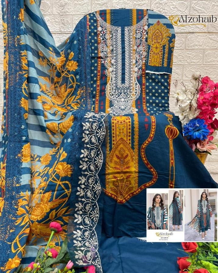 | Name : | Alzohaib Rubina Vol 1 Series 1220 A To D Stylish Cotton Pakistani Suit In Wholesale Surat | ||