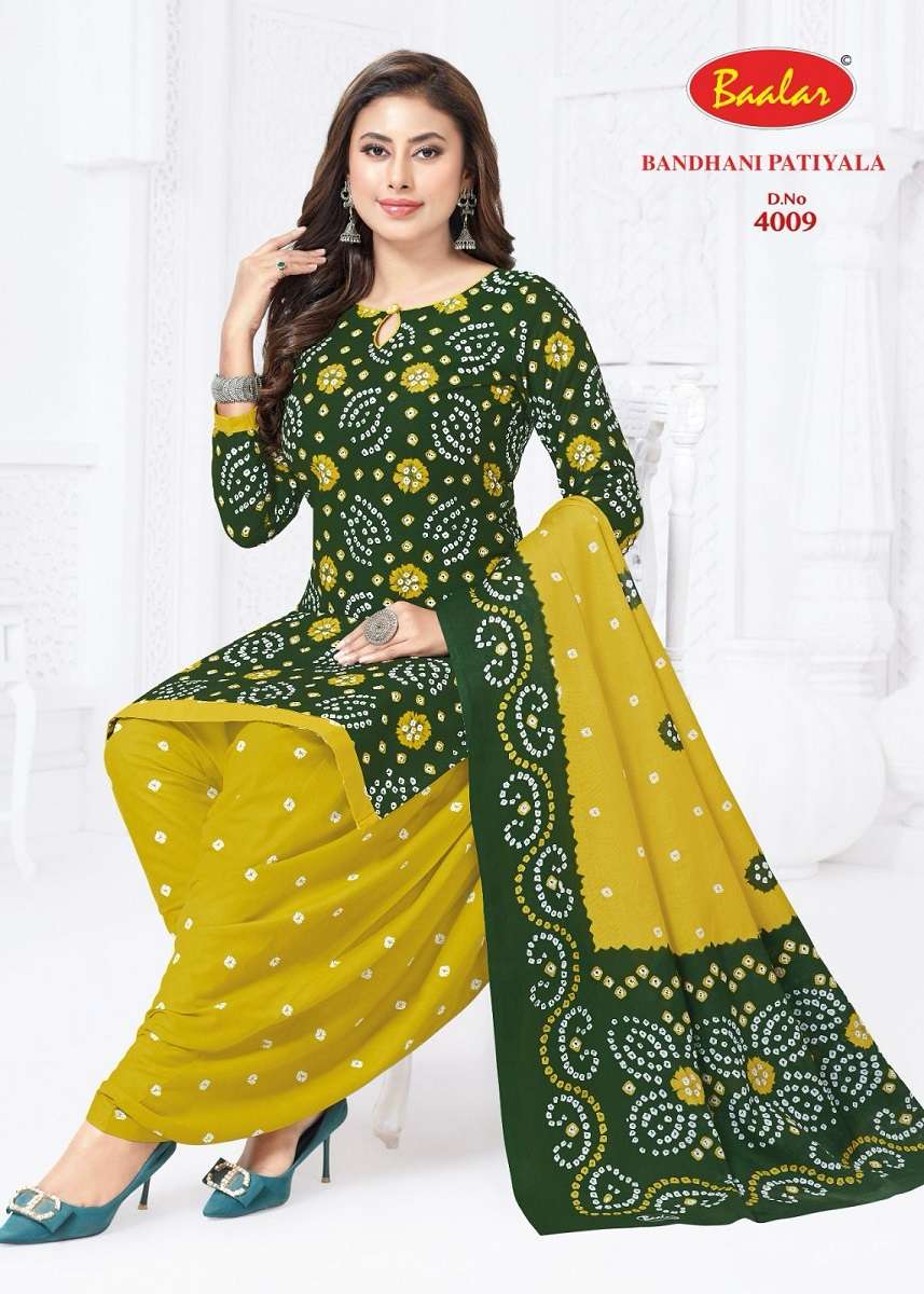 buy Baalar Bandhani Vol-4 series 4005 to 4016 Heavy Cotton Printed salwar kameez in wholesale surat latest catalogue 2025