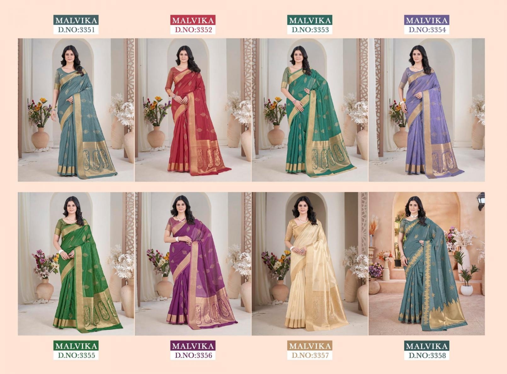 | Name : | Bansi Malvika Series 3351 To 3364 Unique Weaving Buta Jari Cotton Silk Uniform Saree In Wholesale Surat | ||