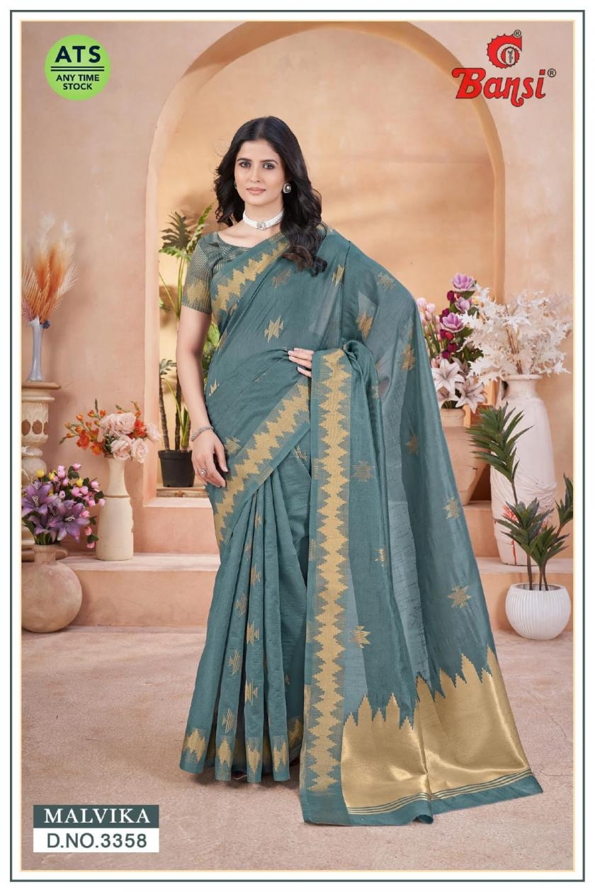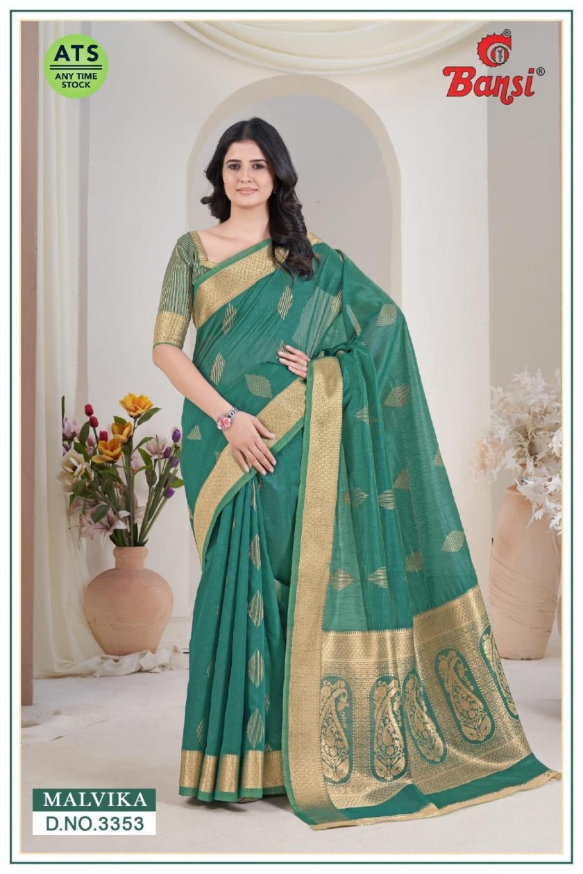 buy bansi malvika series 3351 to 3364 unique weaving buta jari cotton silk uniform saree in wholesale surat latest catalogue 2025