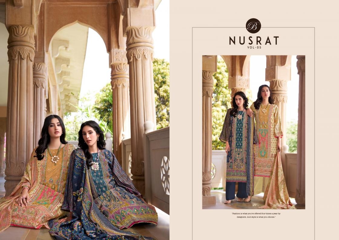 buy belliza nusrat vol 5 series 849001-849006 modal viscose muslin wholesale suit latest catalogue 2025