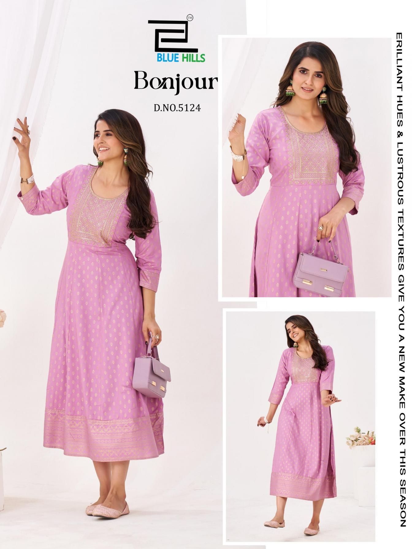 buy blue hills bonjour series 5121-5126 RAYON 14 KG FOIL PRINT kurti latest catalogue 2025