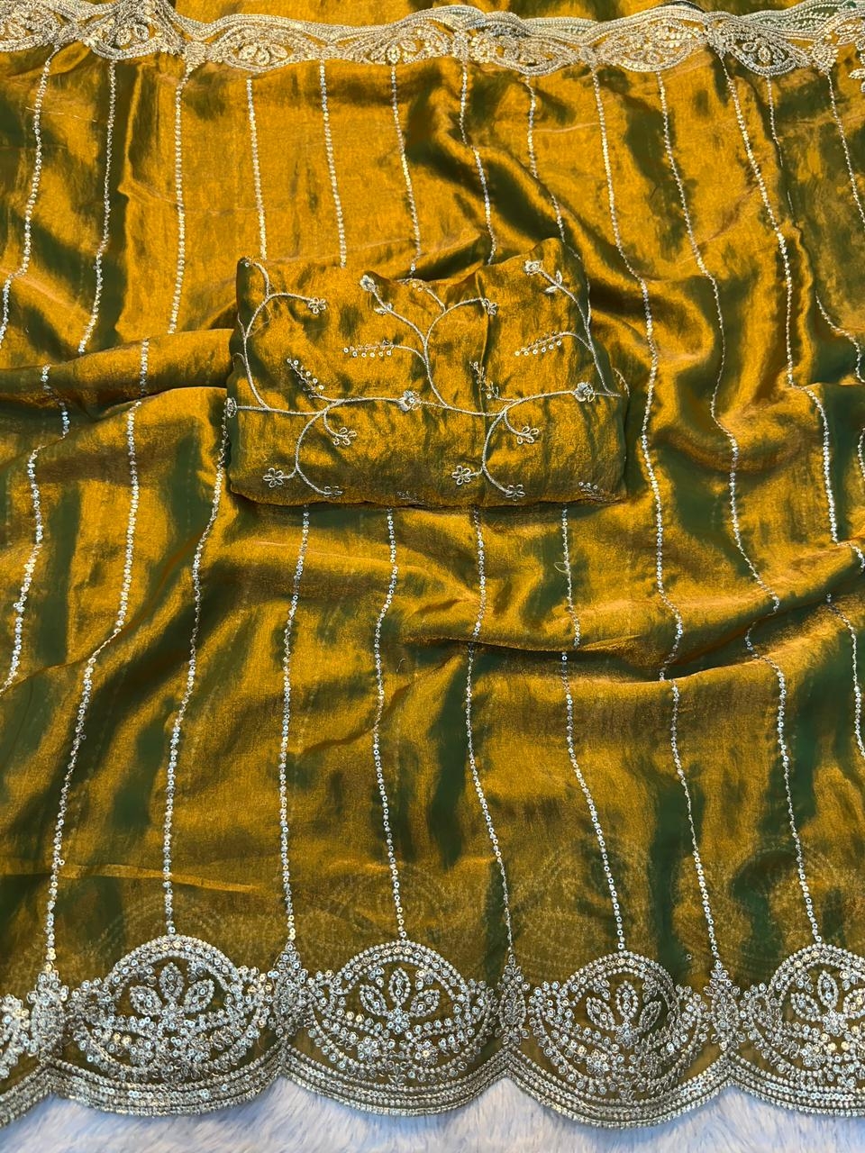 Arpita New Arrivals Fendy satin Multi Sequence Emrodairy Work With Running Work Blouse Price 1199/- Ready Stock Available |