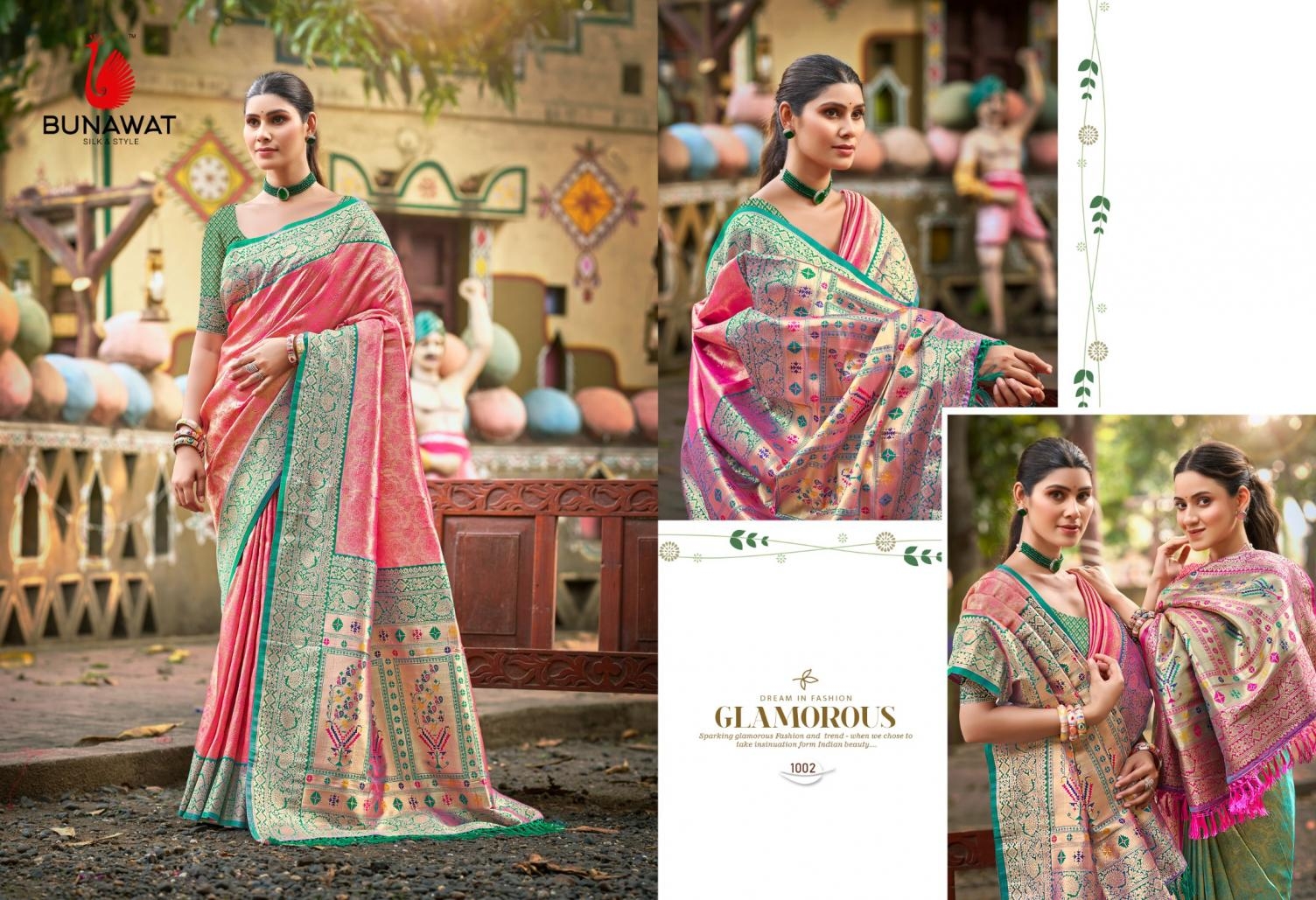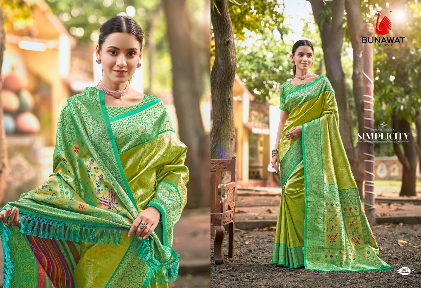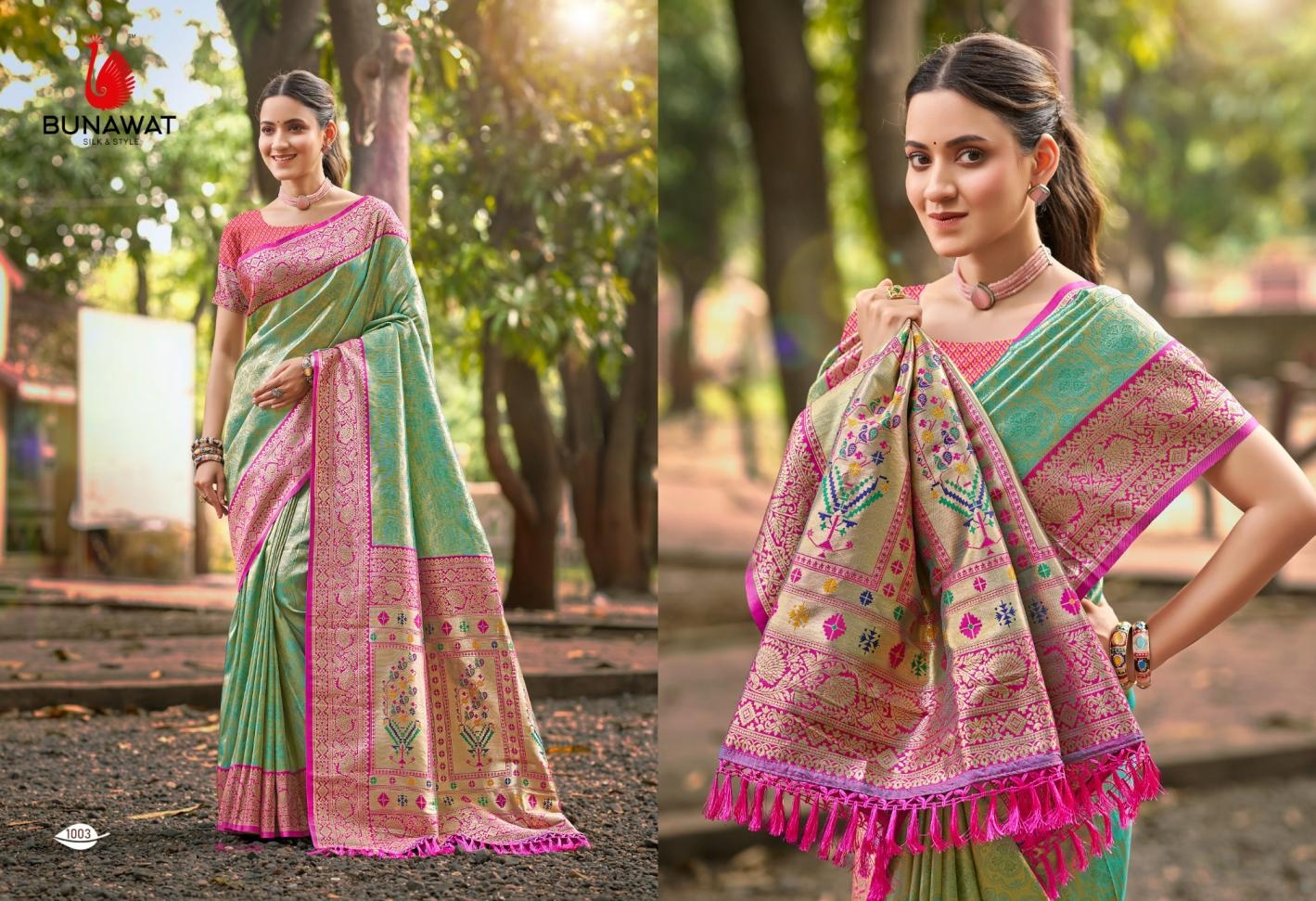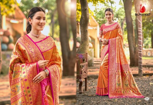 buy Bunawat Devyani SIlk-06 series 1001 to 1006 Sangam Prints Kanjivaram Silk Woven Work Traditional Saree in wholesale surat latest catalogue 2025