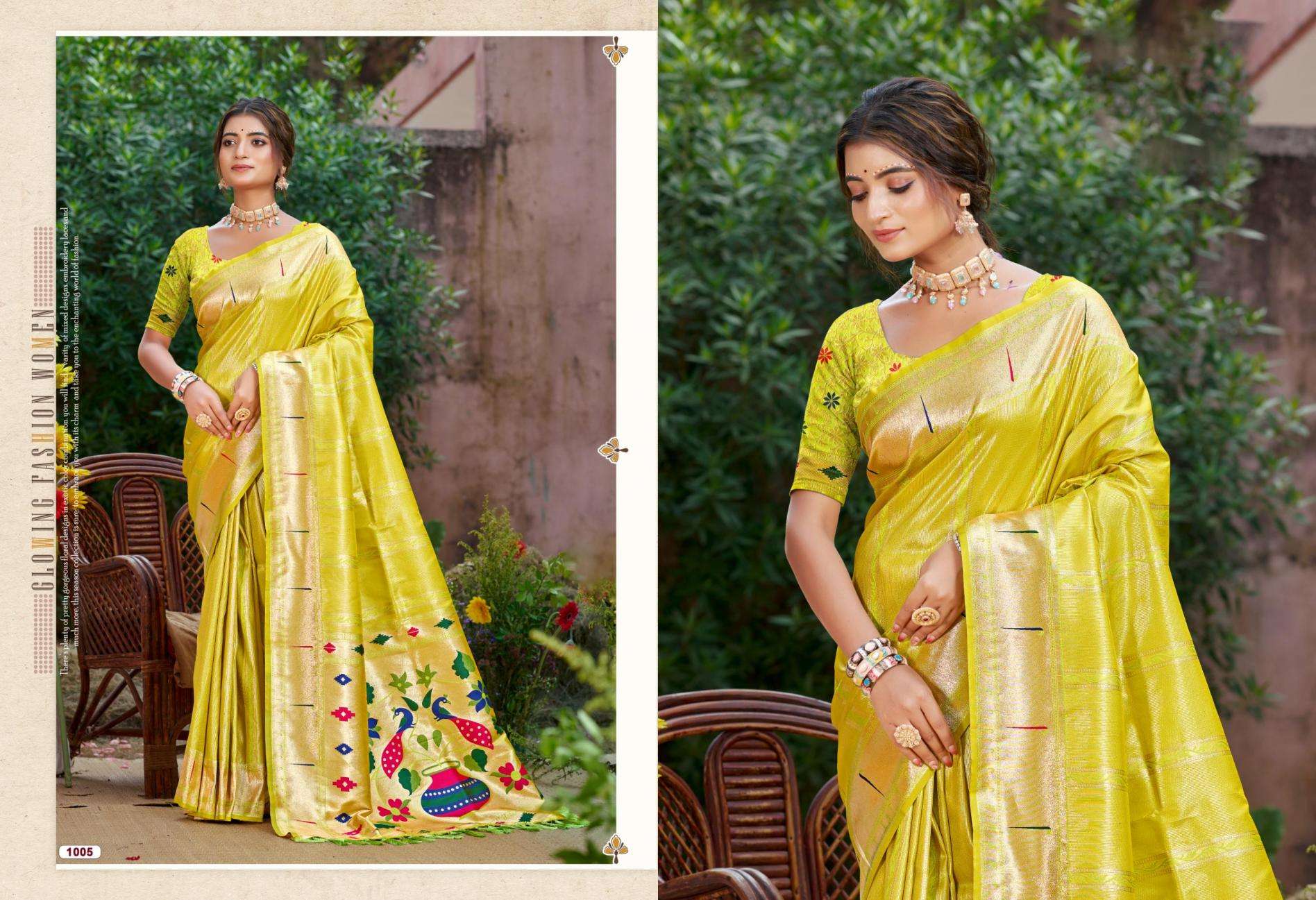 buy Bunawat Rithika Silk series 1001 to 1008 Sangam Prints Silk Woven Work Traditional Saree in wholesale surat latest catalogue 2025