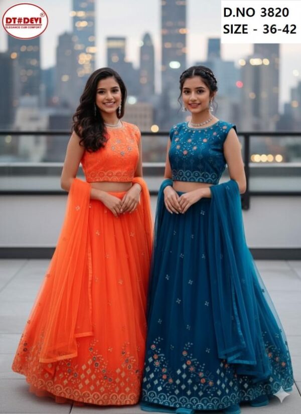 | Name : | Dt Devi 3820 Net Kesri Fully Stitch Designer Combo Crop Top | |