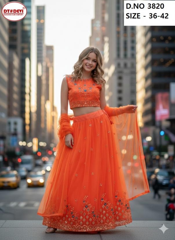 buy dt devi 3820 net kesri fully stitch designer combo crop top latest catalogue 2025