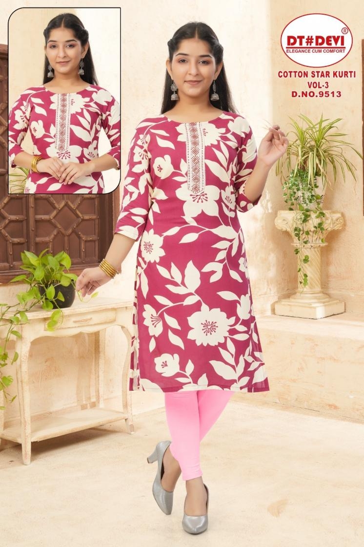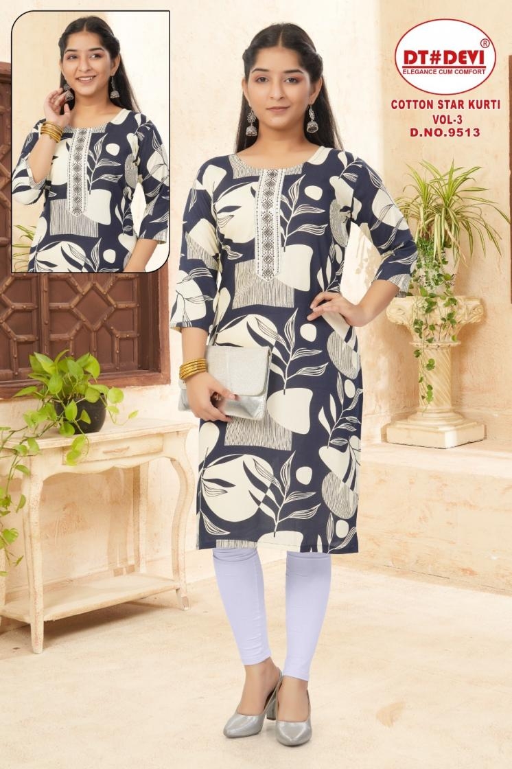 • Full Name : Dt Devi Cotton Star Vol 3 9513 Rayon Full Stitch Combo Kids Kurtis In Wholesale Surat