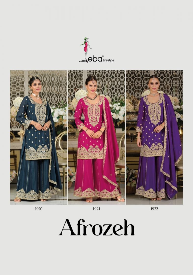 Name : Eba Lifestyle Afrozeh Series 1920 To 1922 Chinon Readymade Festive Plazzo Suit In Wholesale Surat