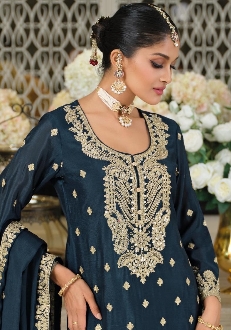 • Partywear salwar suits with sequins and Zari