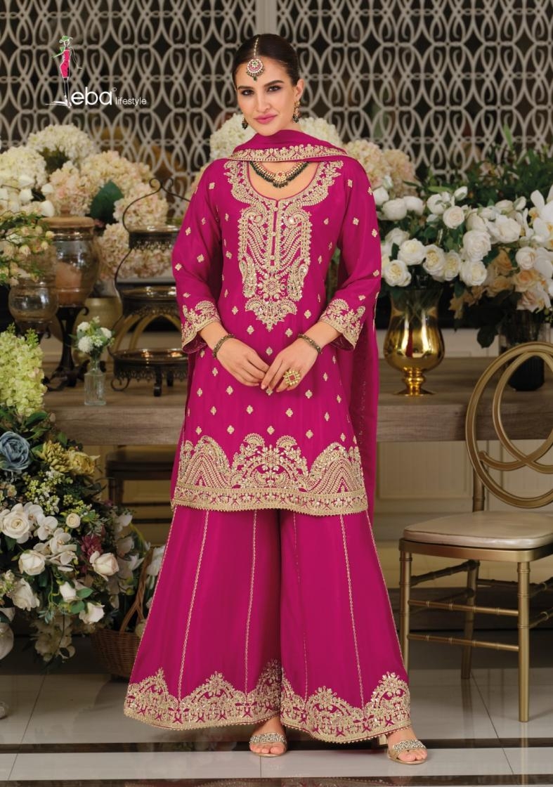 • Full Name : Eba Lifestyle Afrozeh Series 1920 To 1922 Chinon Readymade Festive Plazzo Suit In Wholesale Surat