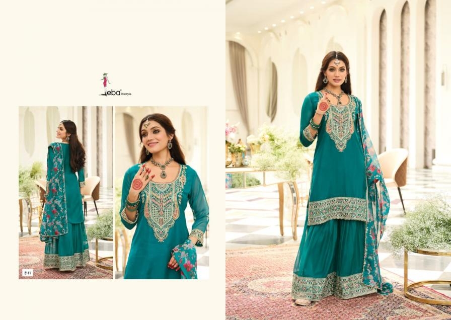 eba lifestyle nidhi series 2111 to 2113 fully stitch organza fashionable plazzo kurti with dupatta in wholesale surat Buy New Latest Catalogue 2025 eba lifestyle nidhi series 2111 to 2113 fully stitch organza fashionable plazzo kurti with dupatta in wholesale surat. Available in Singles and Bulk at Rehmat Boutique. Buy at Wholesale price at very reasonable rate. Specification :