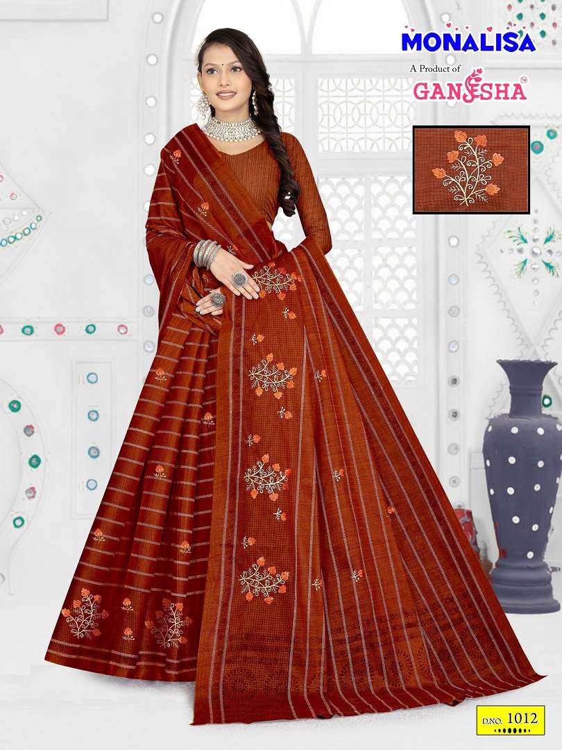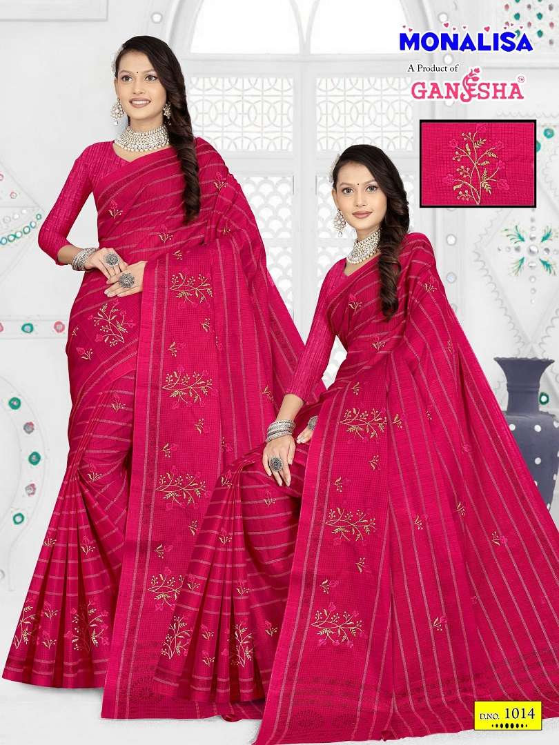 buy Ganesha Monalisa series 1008 to 1015 Pure Cotton With Embroidery Work Cotton Saree in wholesale surat latest catalogue 2025