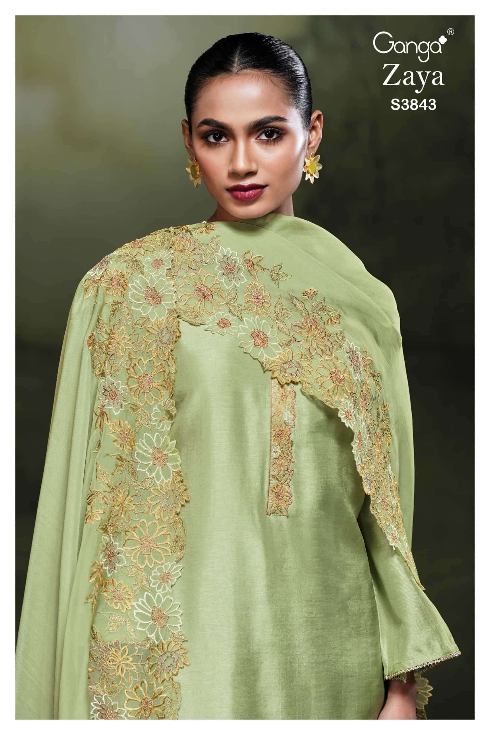 buy Ganga Fashion Zaya 3843 A to B Fancy Russian Silk Designer Suit in wholesale surat latest catalogue 2025