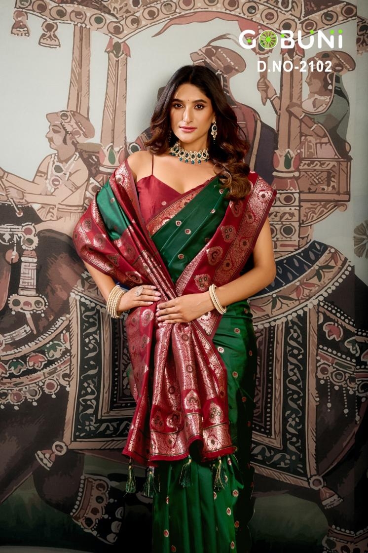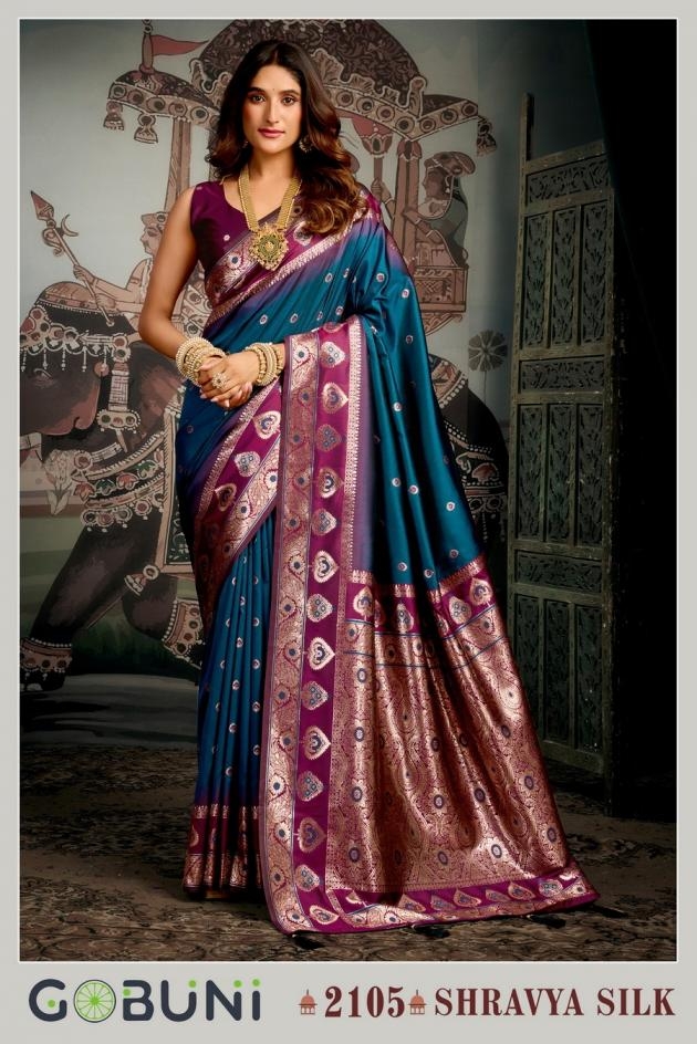 buy gobuni shravya silk series 2101 To 2106 mina work luxurious silk sarees in wholesale surat latest catalogue 2025