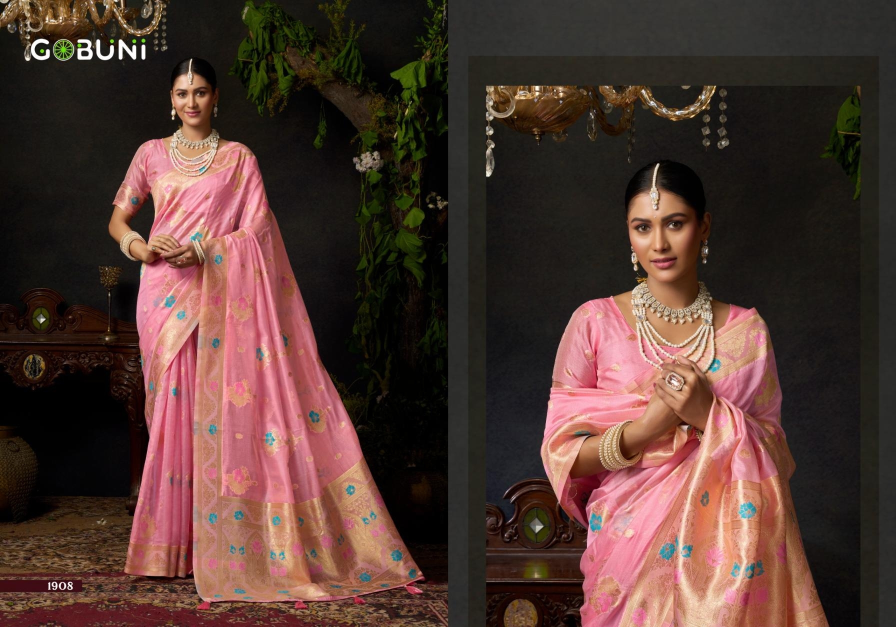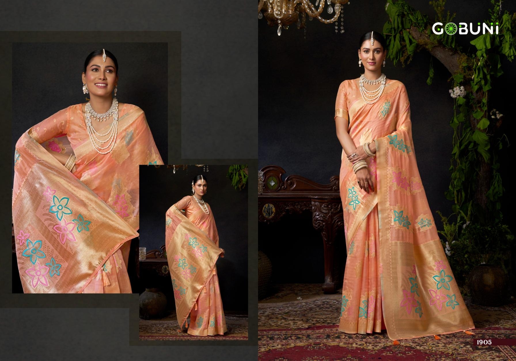 buy gobuni sundari vol 2 series 1905 to 1908 organza khadi with zhallar traditional sarees in wholesale surat latest catalogue 2025