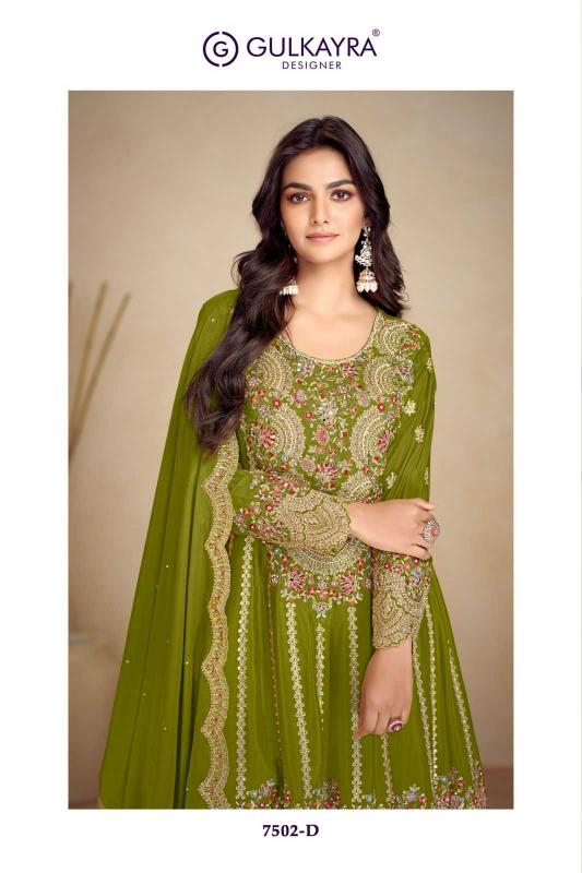 buy Gulkayra Designer Jalwa Series 7502 A-E Chinon Palazzo Style Designer Full Stitch Dress latest catalogue 2025