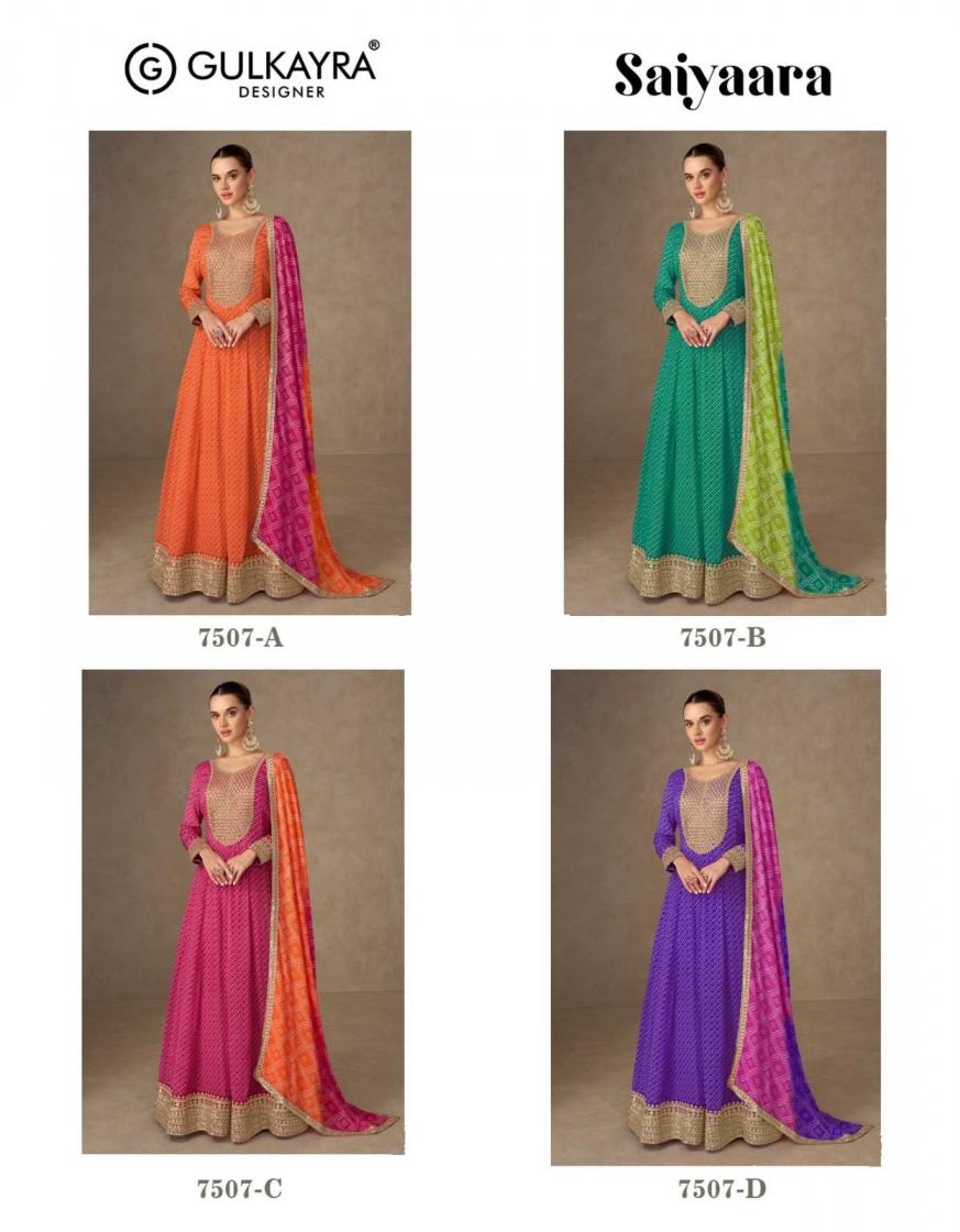 buy gulkayra designer saiyaara series 7508A to 7508D readymade chinon anarkali gown with dupatta in wholeslae surat latest catalogue 2025