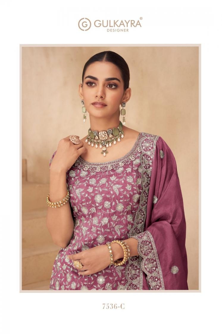 buy gulkayra designer suhana series 1001 A to 1001 C fully stitch exclusicve simar silk plazzo suit in wholesale surat latest catalogue 2025