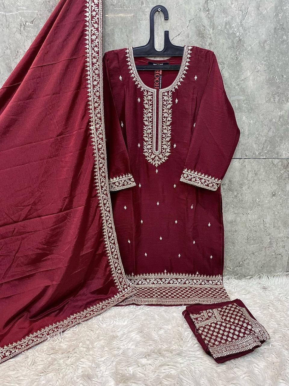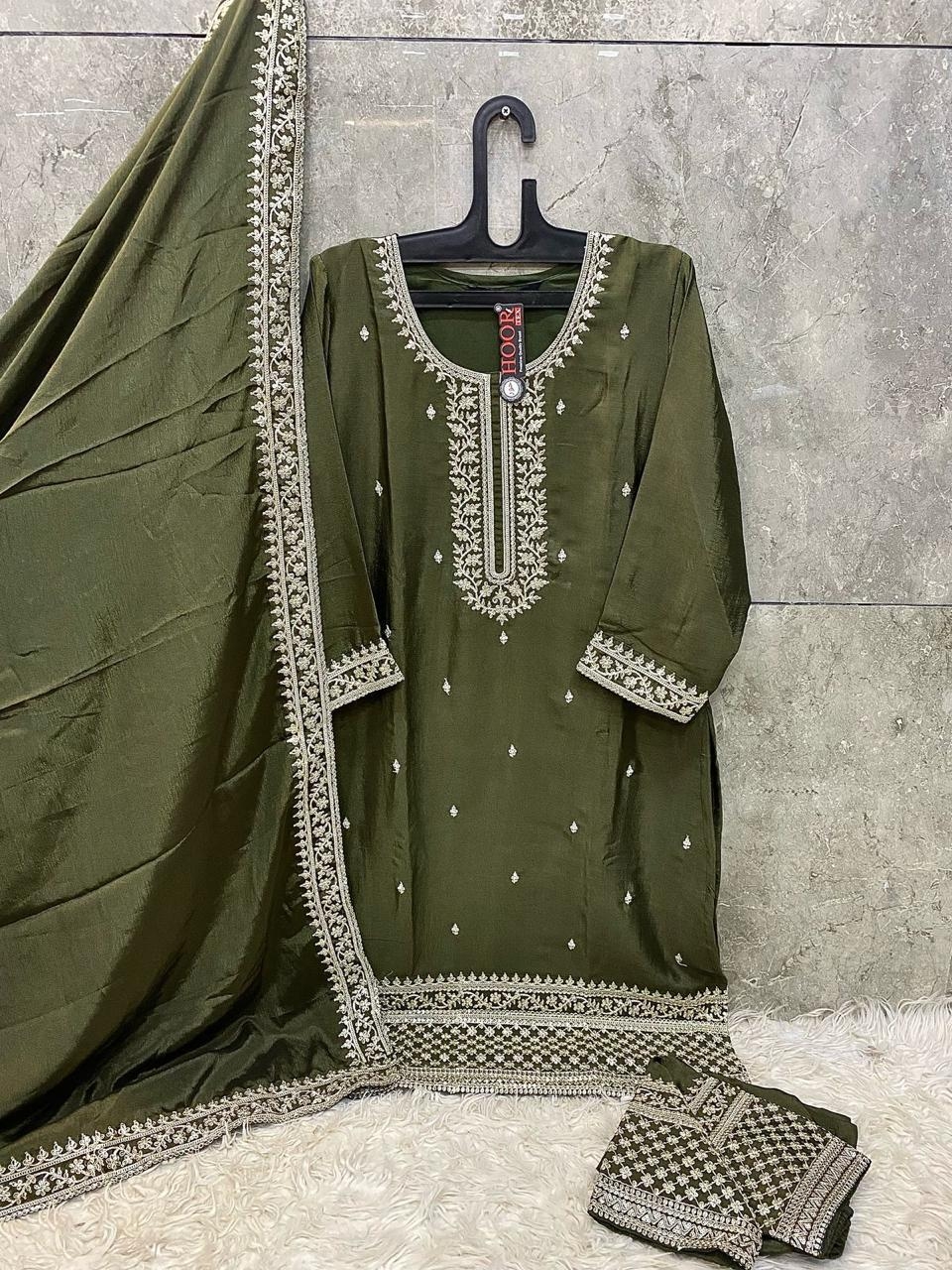 Hoor Tex Top:- Heavy Chinon Bottom :-Heavy Chinon 🔺Dupatta:-Heavy Chinon Size :- (XL-42/XXL-44) Rate :- 1050/- 💸 Dispatching Ready To Ship 🛳 Regard :- Hoor Tex |