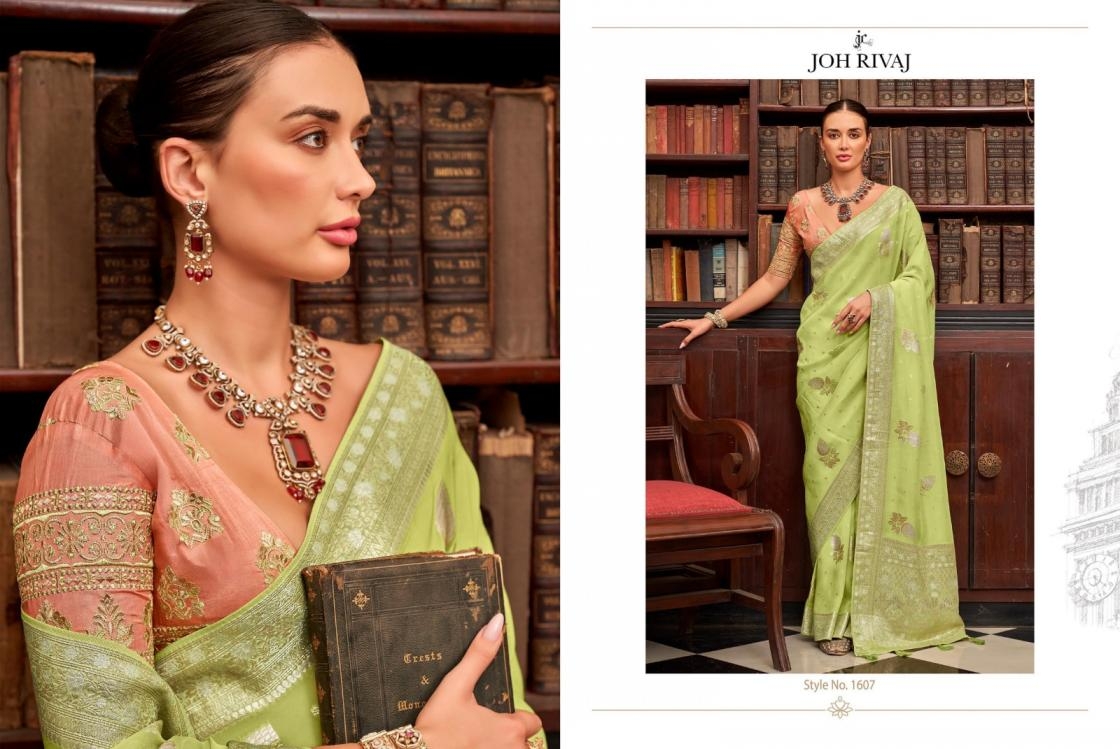 joh rivaaj johari series 1601-1609 viscose dola silk hit design best saree in wholesale surat