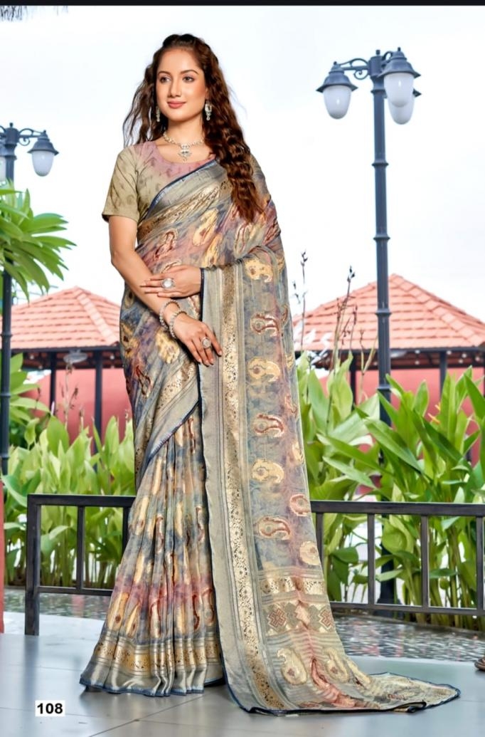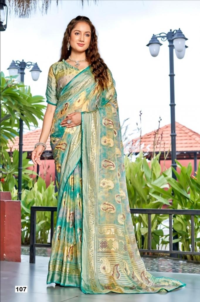 kashvi creation nandika series 101 to 108 dull moss brasso gorgeous look sarees in wholesale surat Buy New Latest Catalogue 2025 kashvi creation nandika series 101 to 108 dull moss brasso gorgeous look sarees in wholesale surat. Available in Singles and Bulk at Rehmat Boutique. Buy at Wholesale price at very reasonable rate. Specification :