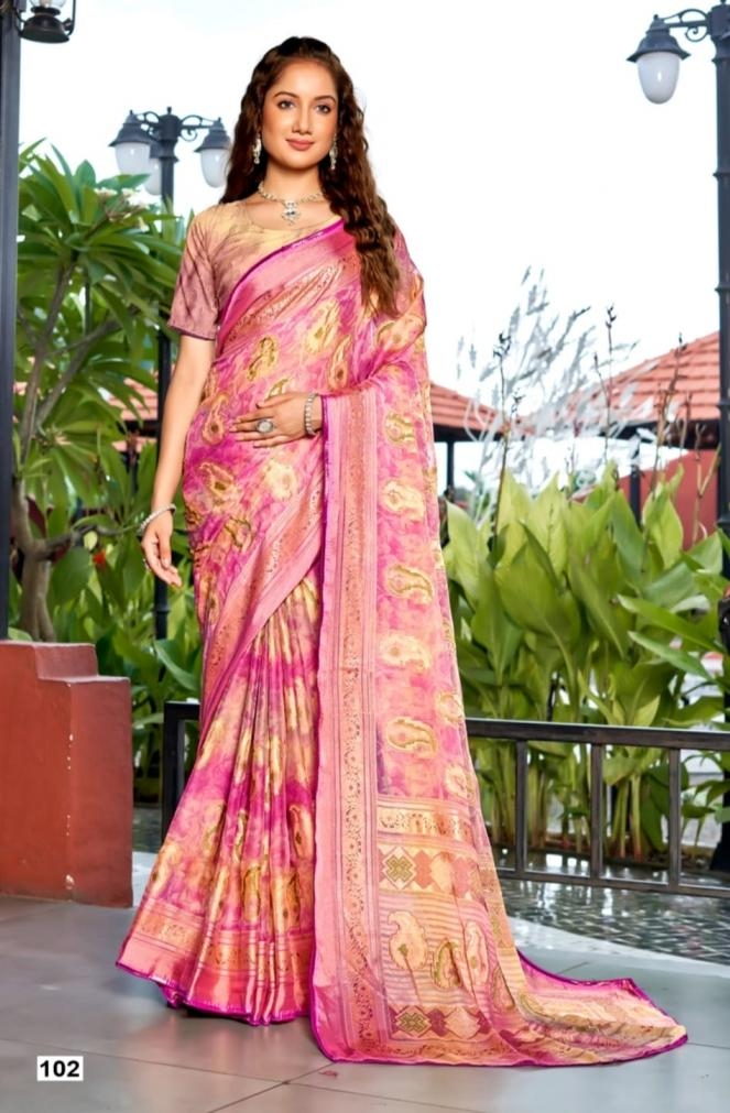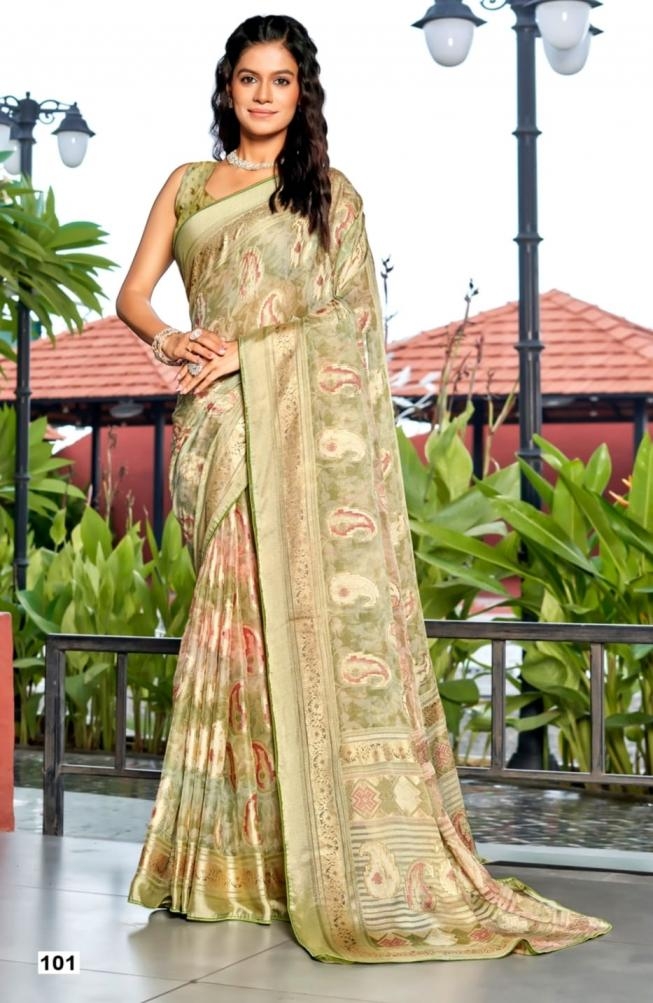 • Full Name : Kashvi Creation Nandika Series 101 To 108 Dull Moss Brasso Gorgeous Look Sarees In Wholesale Surat