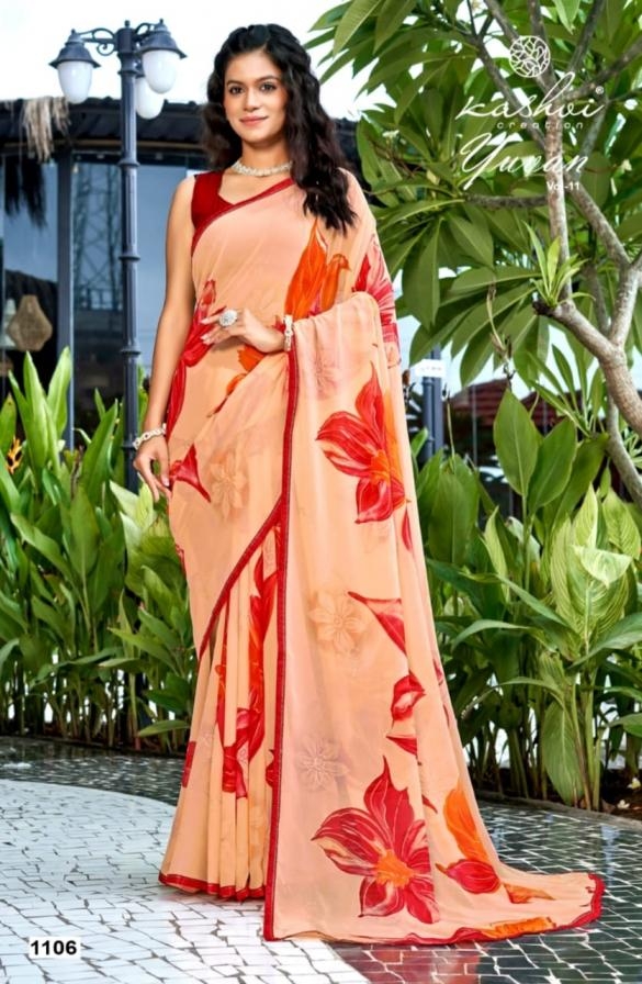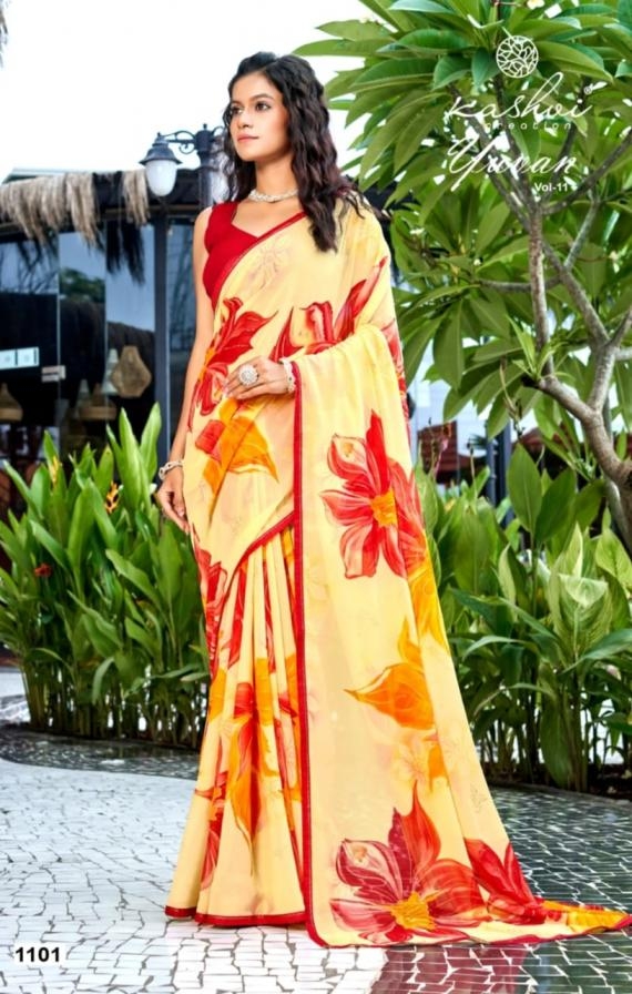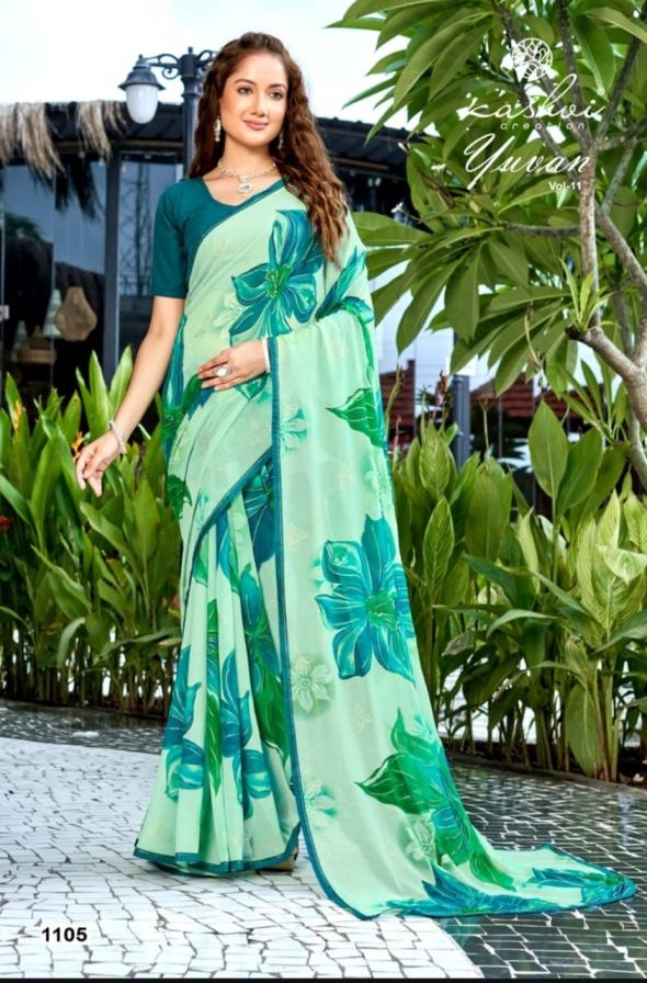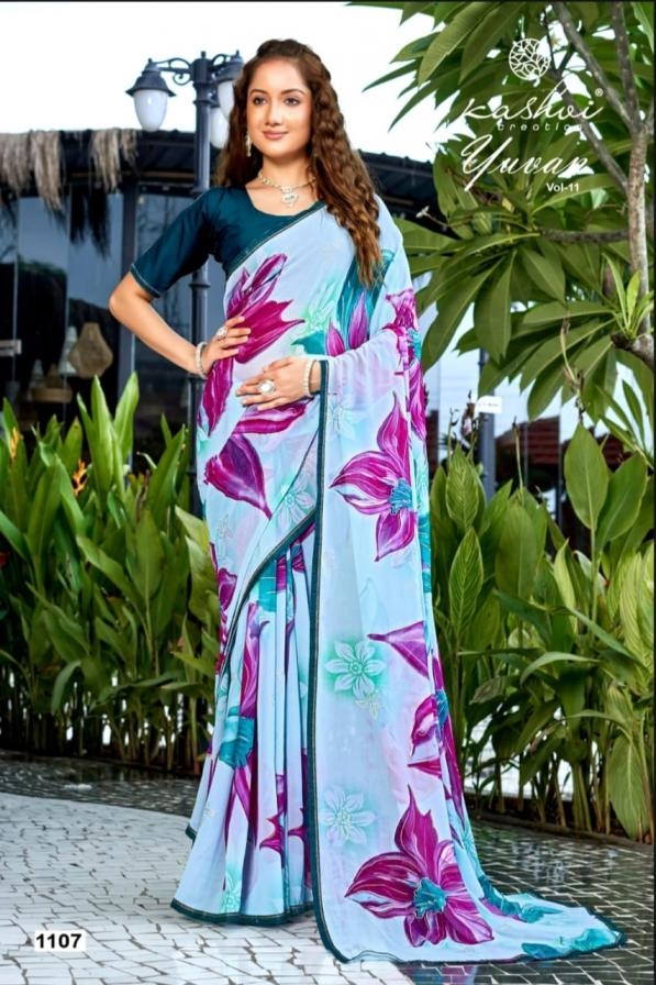 | Name : | Kashvi Creation Yuvan Vol 11 Series 1101 To 1108 Georgette Gorgeous Look Saree In Wholesale Surat | |