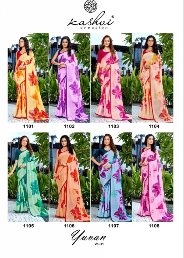 buy kashvi creation yuvan vol 11 series 1101 to 1108 georgette gorgeous look saree in wholesale surat latest catalogue 2025