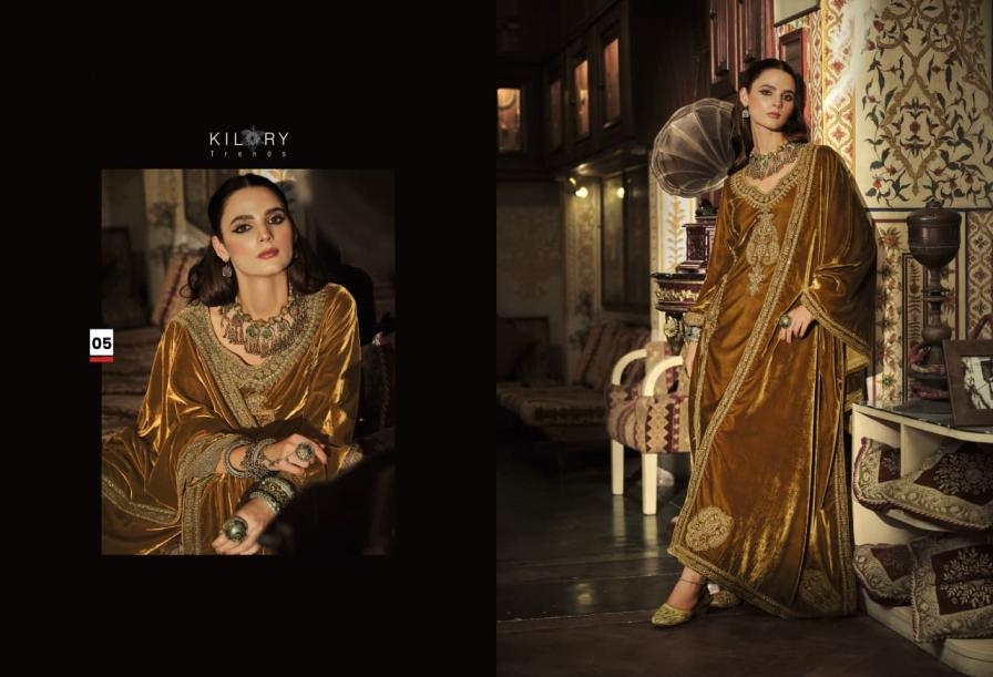 kilory trends surmayi series 01 to 06 valvet designer winter suit in wholesale surat Buy New Latest Catalogue 2025 kilory trends surmayi series 01 to 06 valvet designer winter suit in wholesale surat. Available in Singles and Bulk at Rehmat Boutique. Buy at Wholesale price at very reasonable rate. Specification :