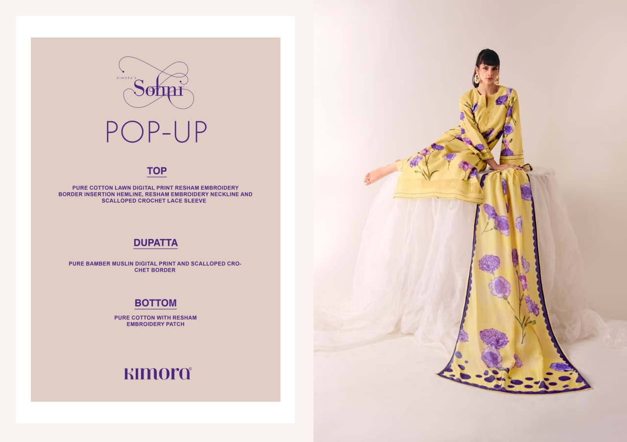 Kimora Sohni Pop Up Vol 54 Lawn Cotton Embroidered Salwar Suits Collection Specification :