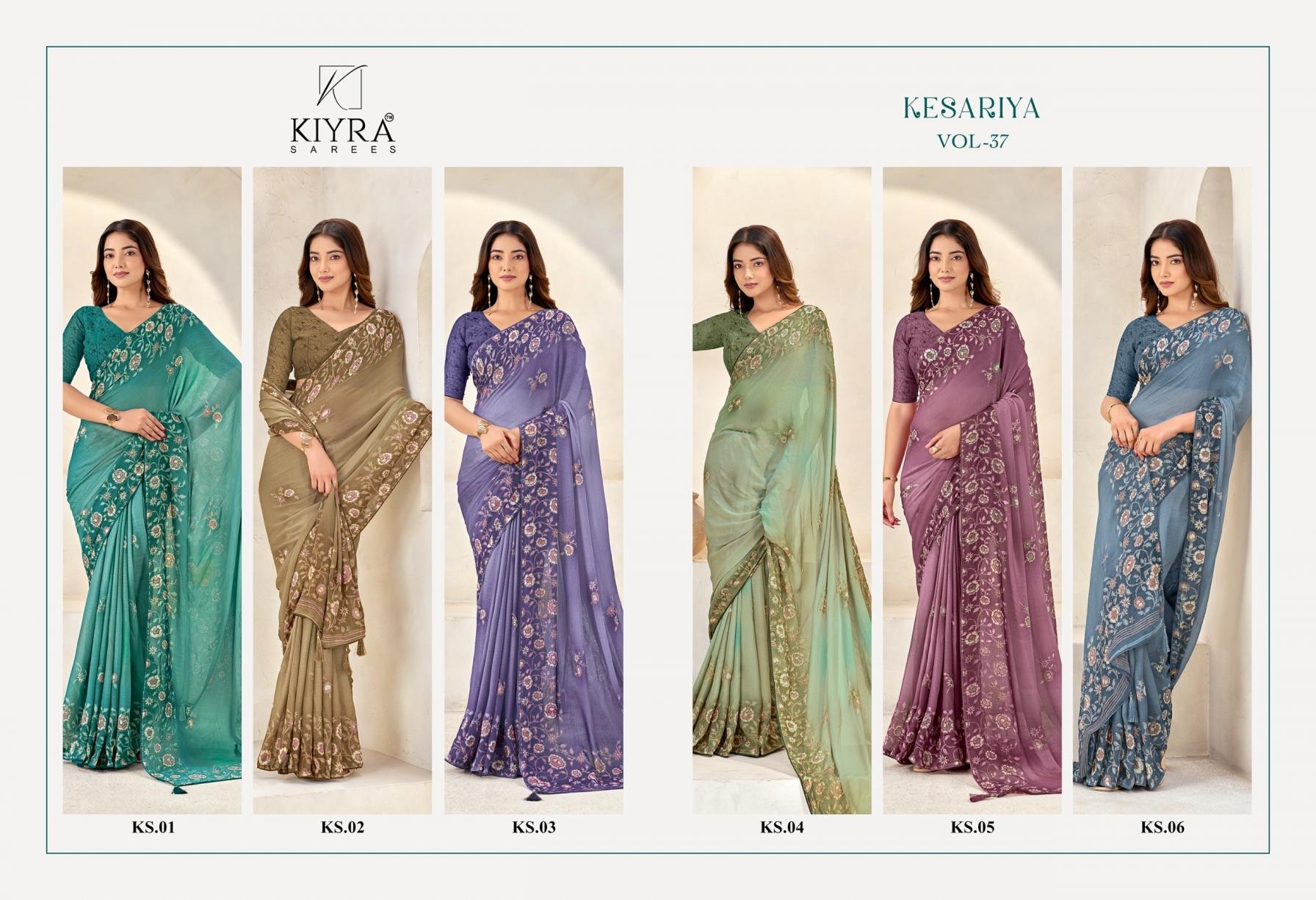 buy kiyra kesariya vol 37 series 01-06 moss silk wholesale saree latest catalogue 2025