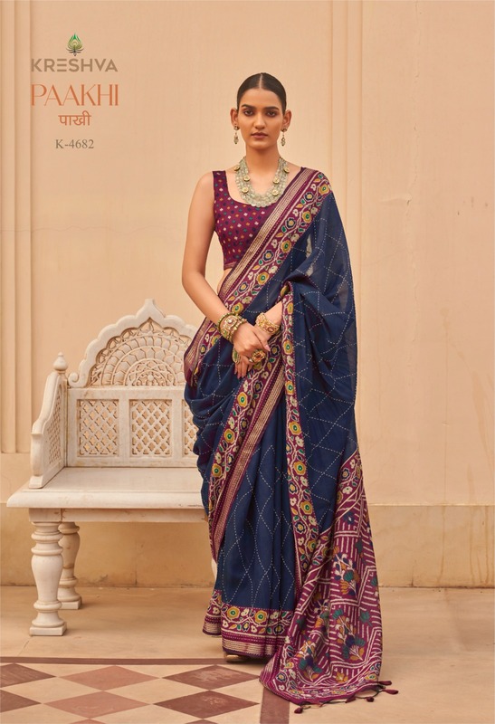 Kreshva Paakhi Silk Katha Work Traditional Saree Collection Specification :