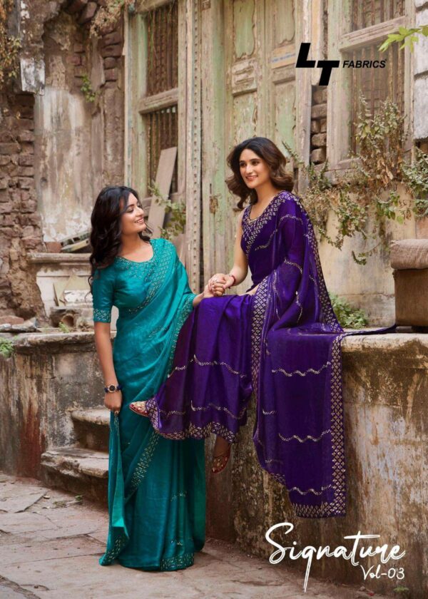lt fashion signature vol 3 series 301 to 306 malai silk new design saree in wholesale surat Buy New Latest Catalogue 2025 lt fashion signature vol 3 series 301 to 306 malai silk new design saree in wholesale surat. Available in Singles and Bulk at Rehmat Boutique. Buy at Wholesale price at very reasonable rate. Specification :