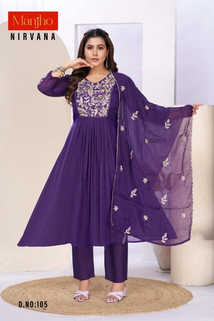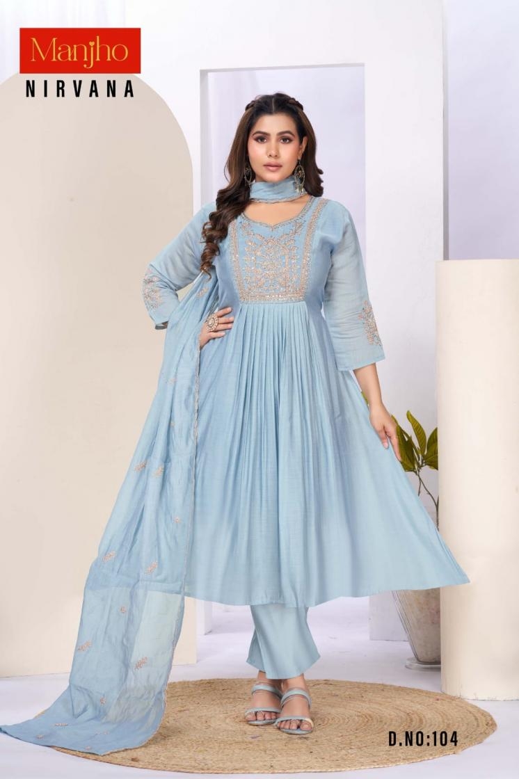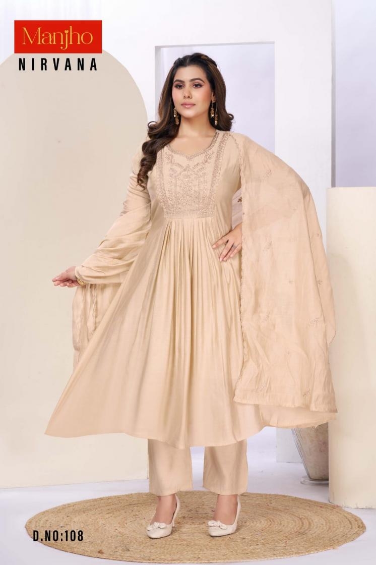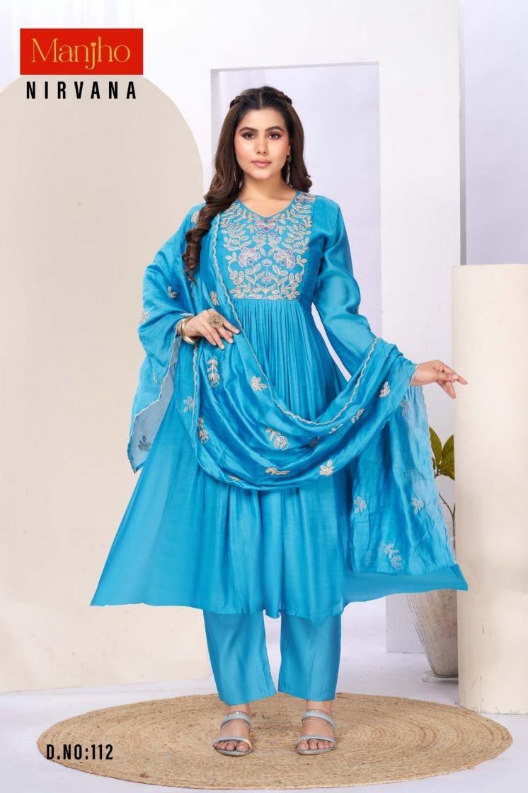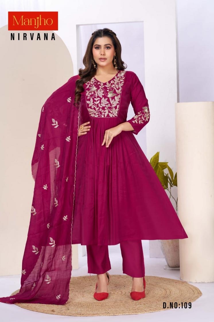 buy manjho nirvana series 101-112 mul chanderi readymade suit latest catalogue 2025