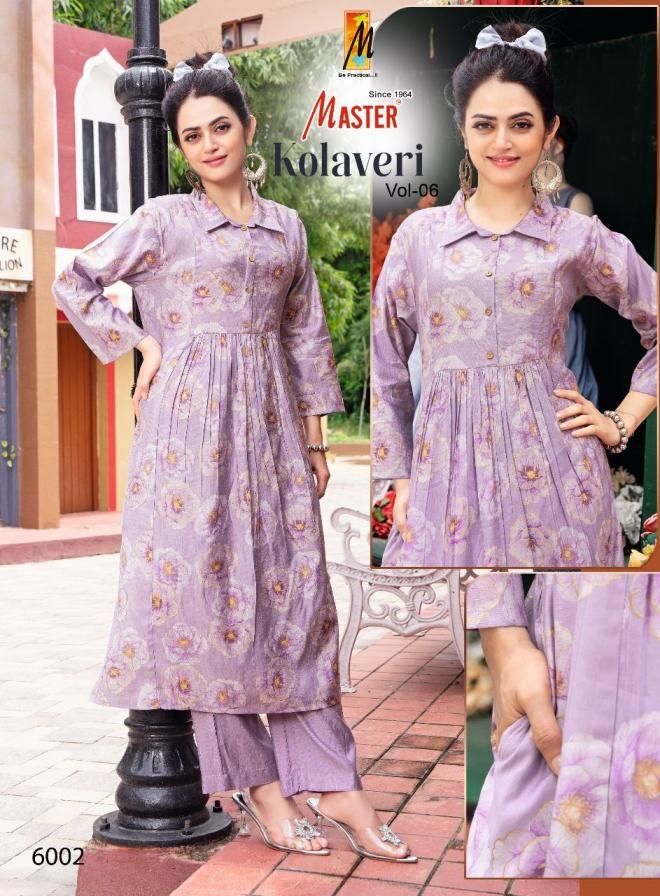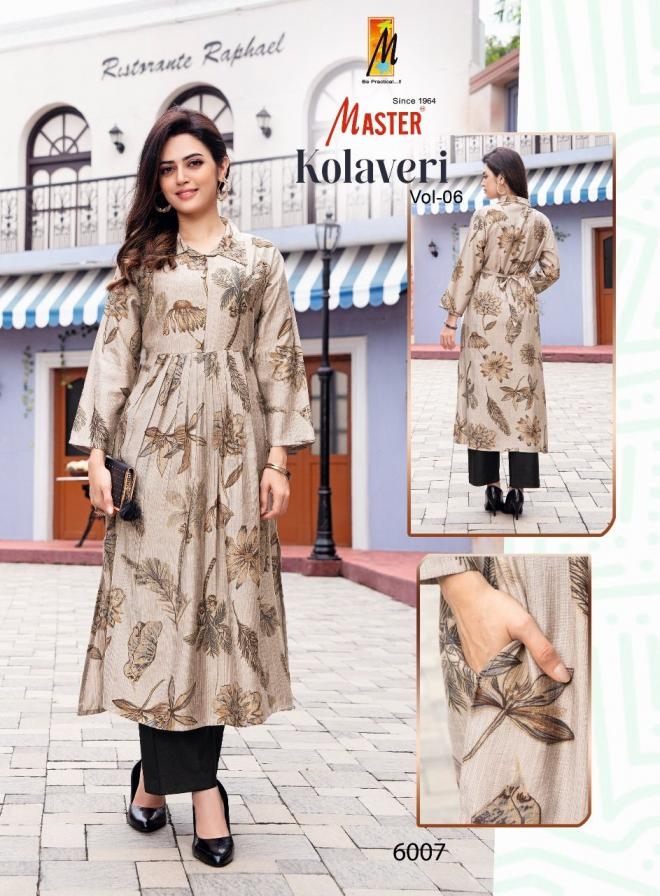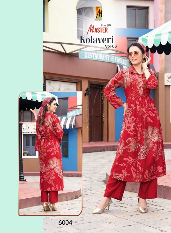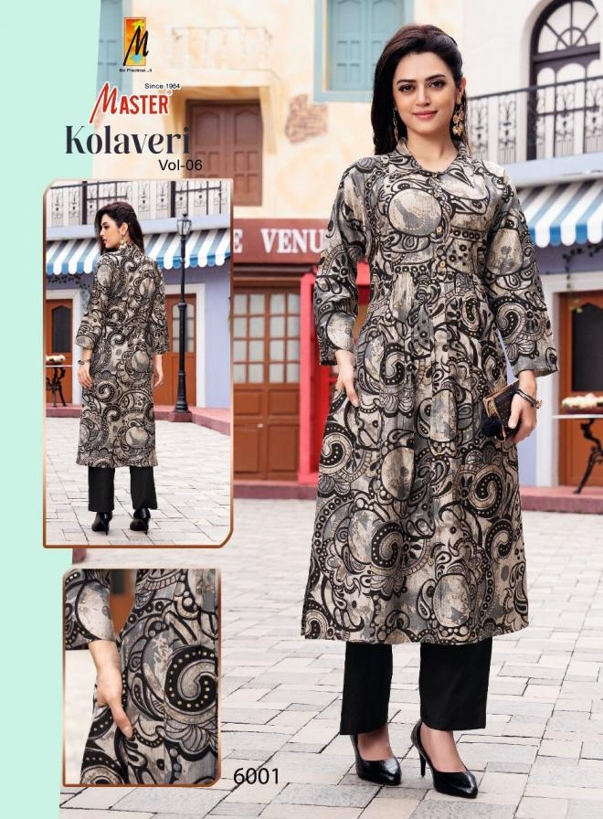master kolavery vol 6 series 6001 to 6008 vertican readymade casual kurti with pant in wholesale surat