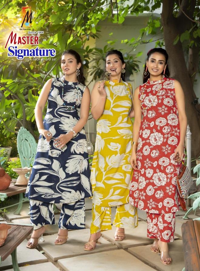 master signature series 1001 to 1008 rayon readymade classic co-ord sets in wholesale surat
