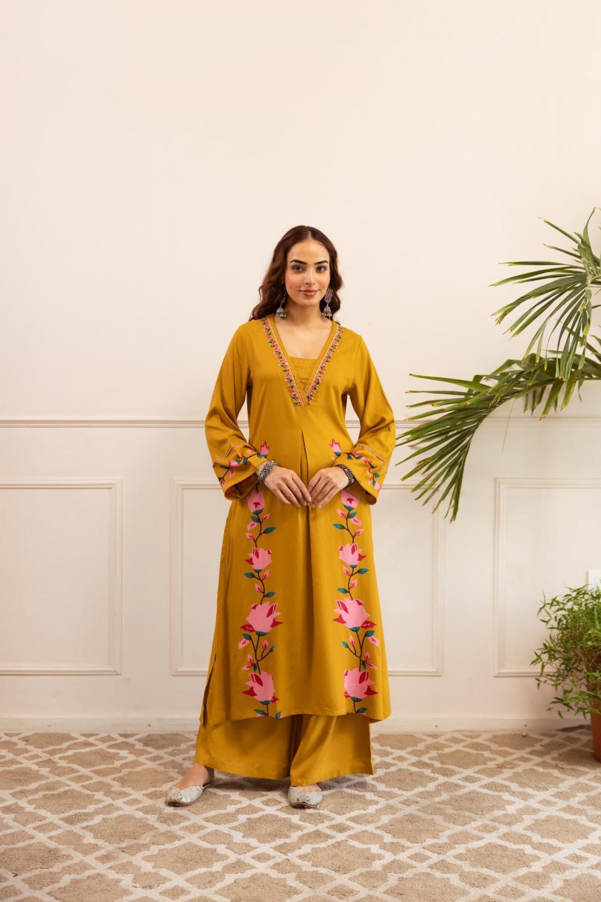 buy modern german rayon daily wear readymade combo set kurti with plazzo in wholesale surat latest catalogue 2025