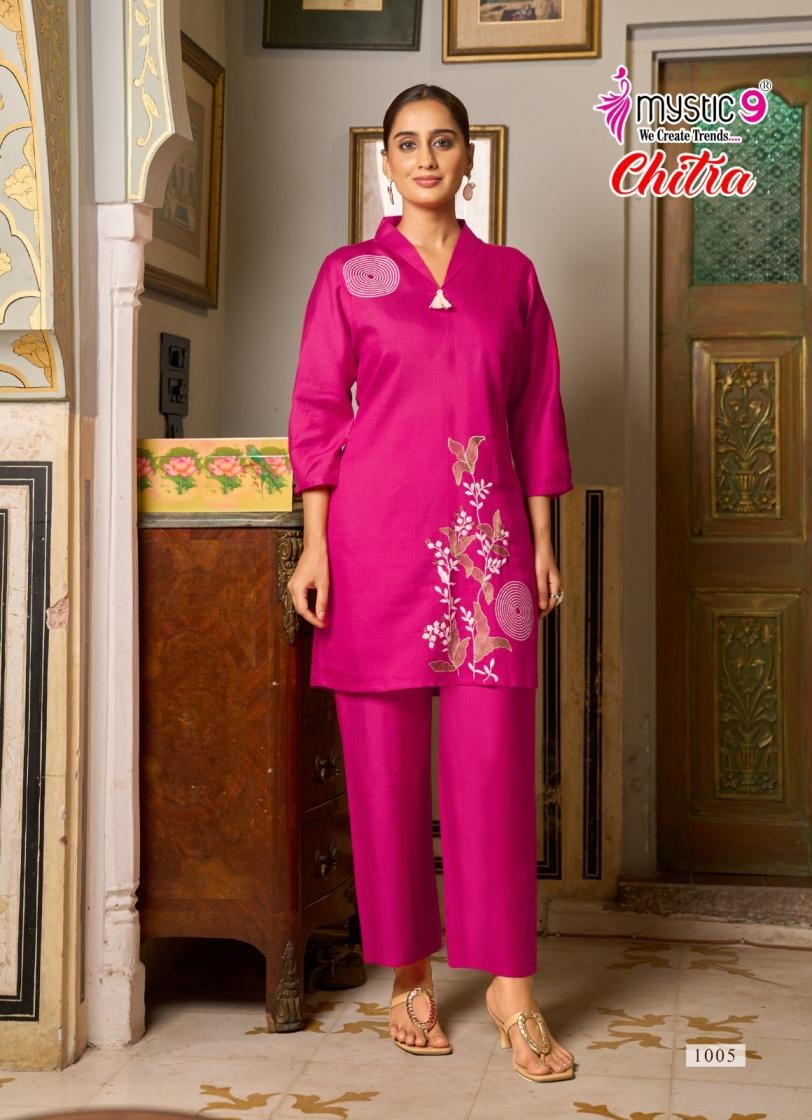 buy mystic9 chitra vol 1 series 1001 to 1008 readymade casual vertican dyed co-ord sets in wholesale surat latest catalogue 2025