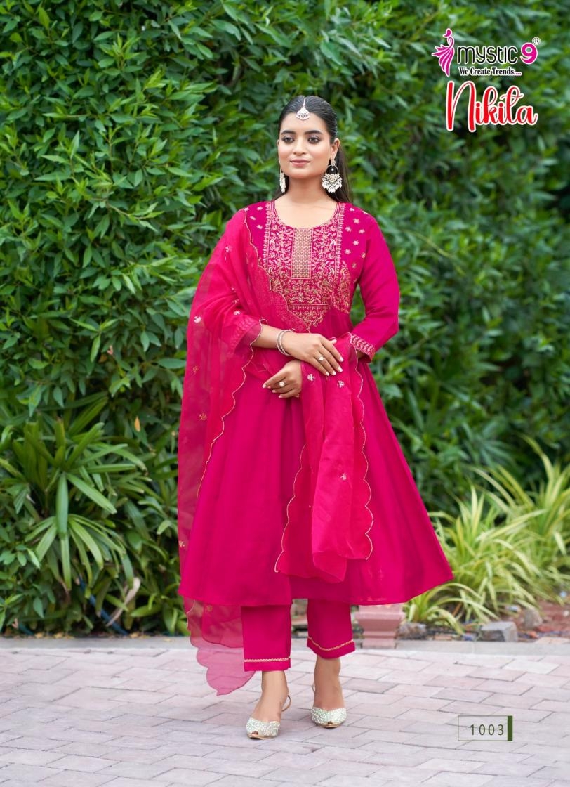 buy mystic9 nikita vol 1 series 1001-1008 roman silk readymade suit latest catalogue 2025