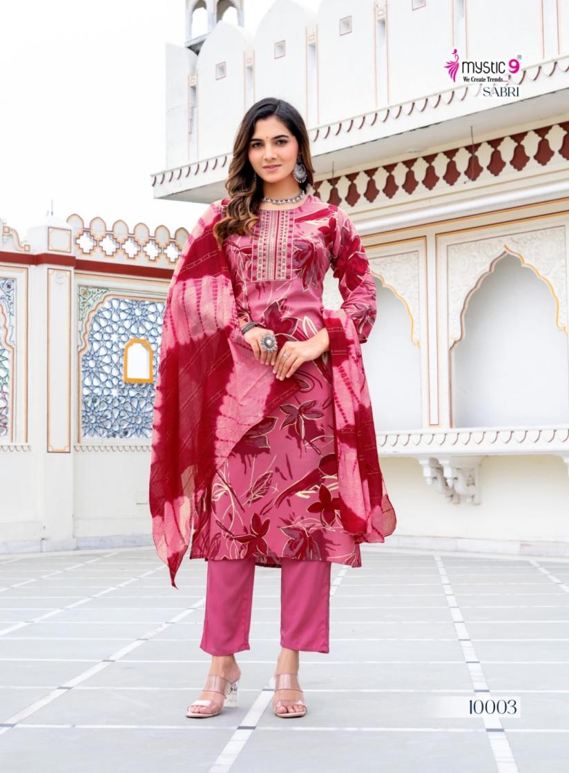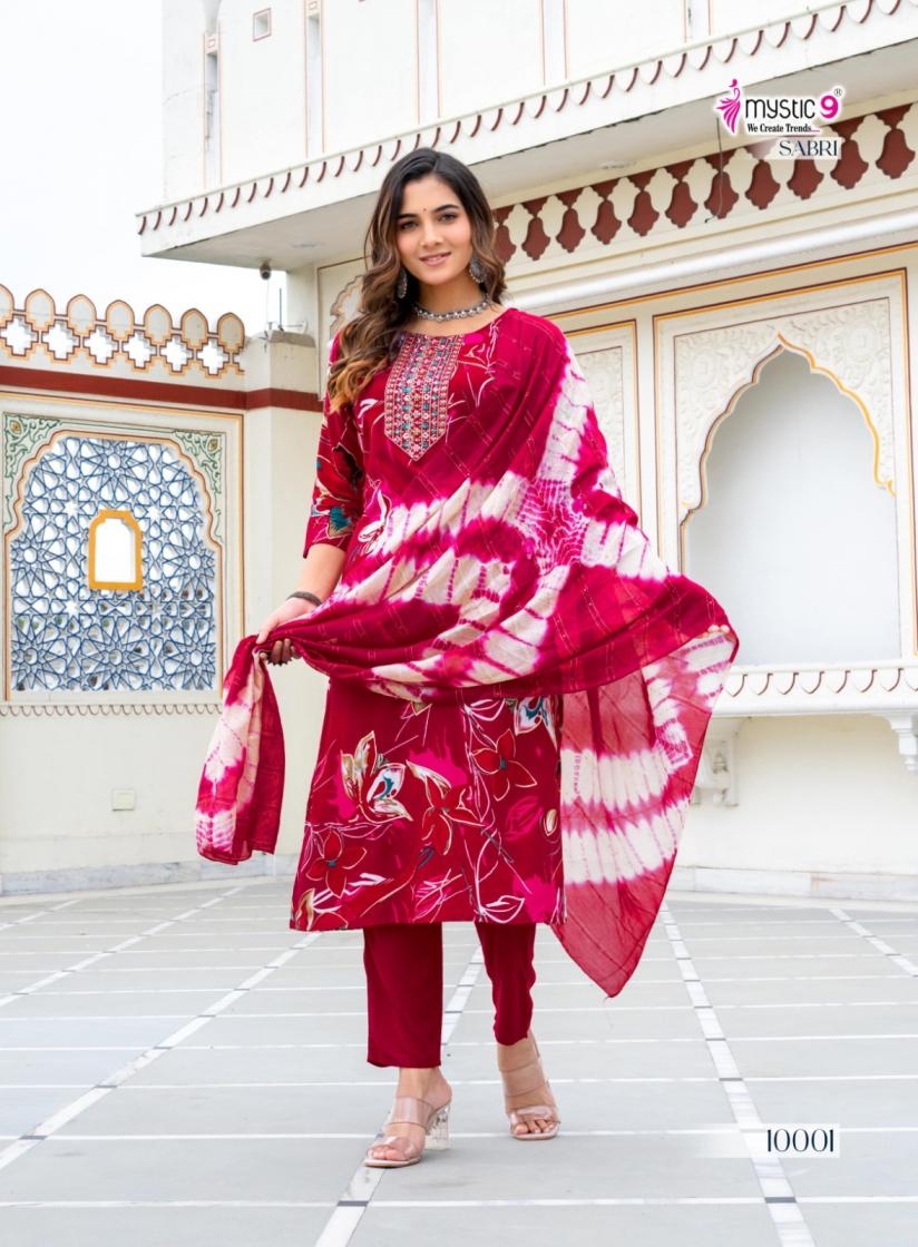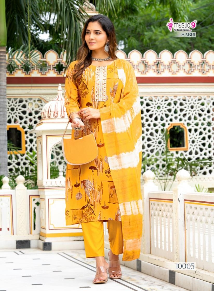 buy mystic9 sabri vol 10 series 10001 to 10008 rayon readymade casual suit in wholesale surat latest catalogue 2025