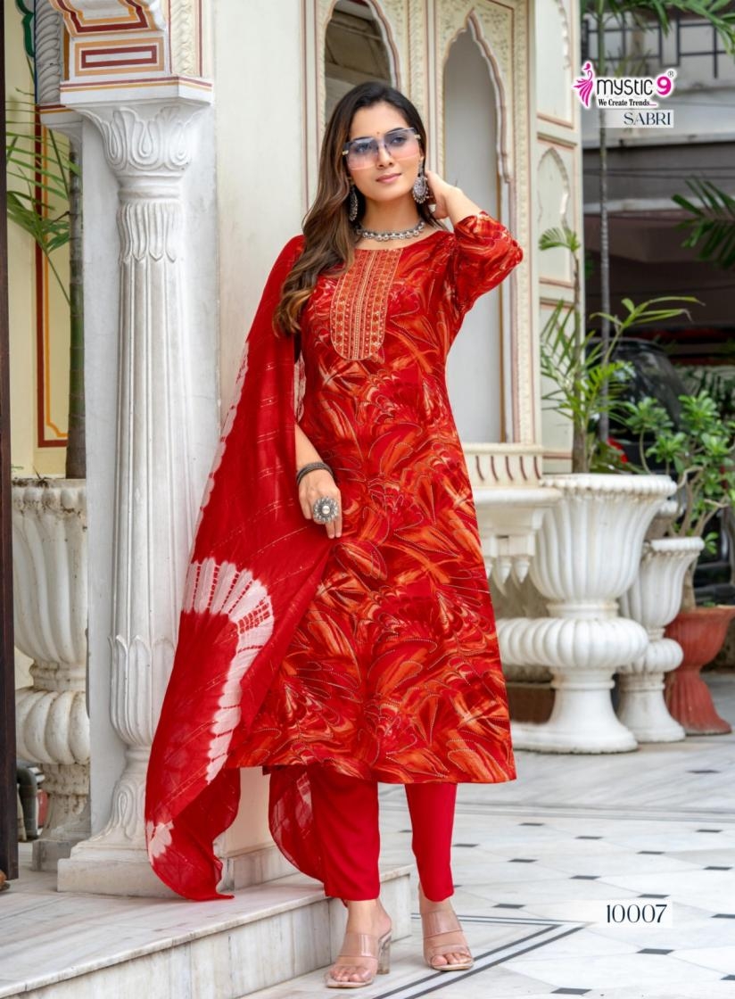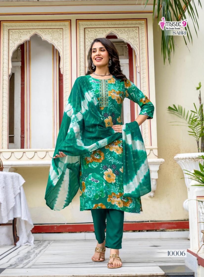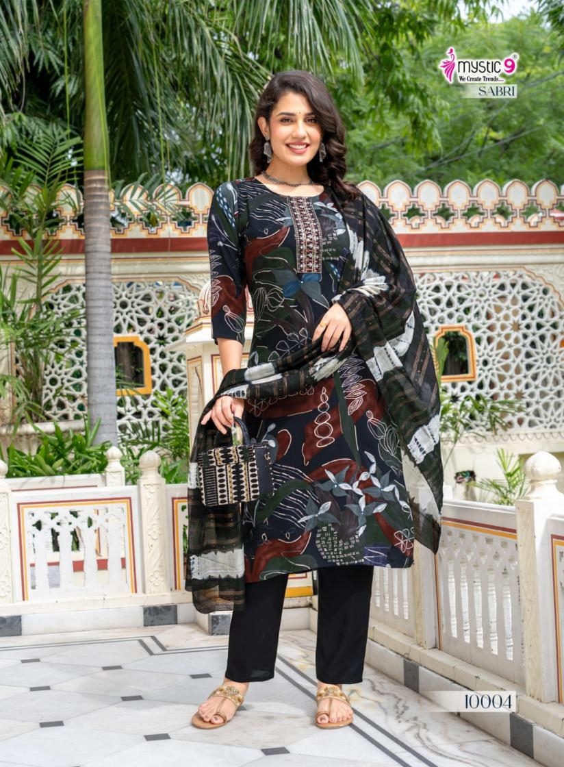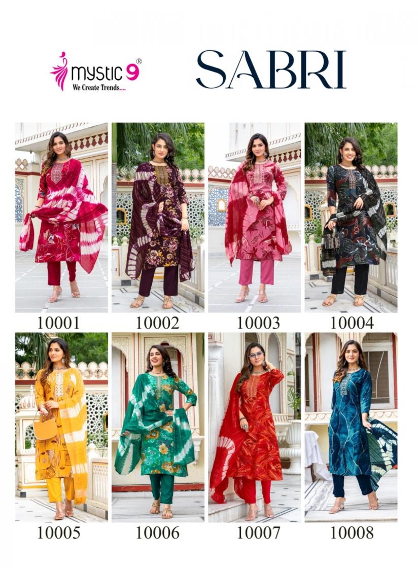 buy mystic9 sabri vol 10 series 10001 to 10008 rayon readymade casual suit in wholesale surat latest catalogue 2025