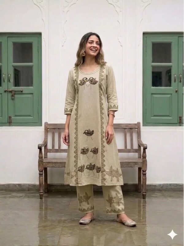 The designer kurta with matching pants and dupatta showcases rich cultural patterns and detailed prints that reflect timeless Indian fashion. Its breathable fabric ensures all-day comfort while the stylish silhouette gives you a trendy yet traditional appearance. Pair it with heels or ethnic footwear to create a perfect festive look.