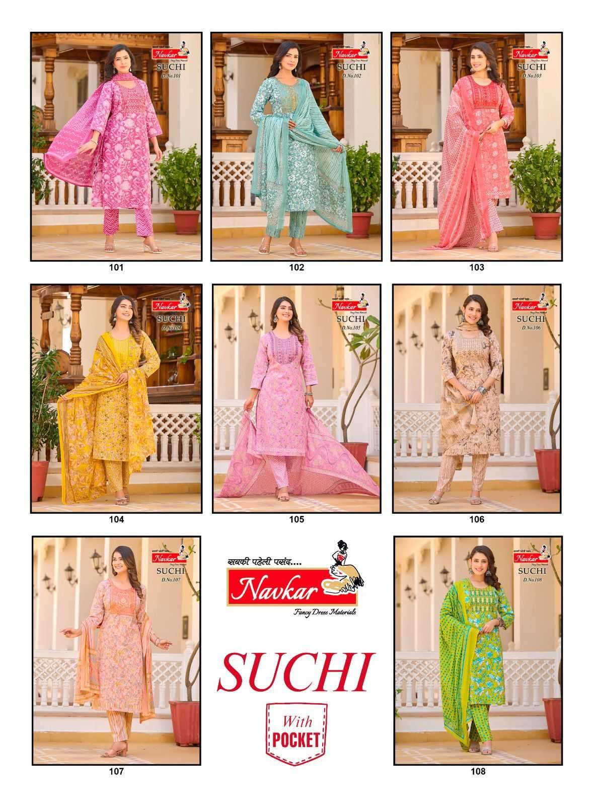• Full Name : Navkar Suchi Vol 1 Series 101-108 Cotton Cambric Readymade Suit