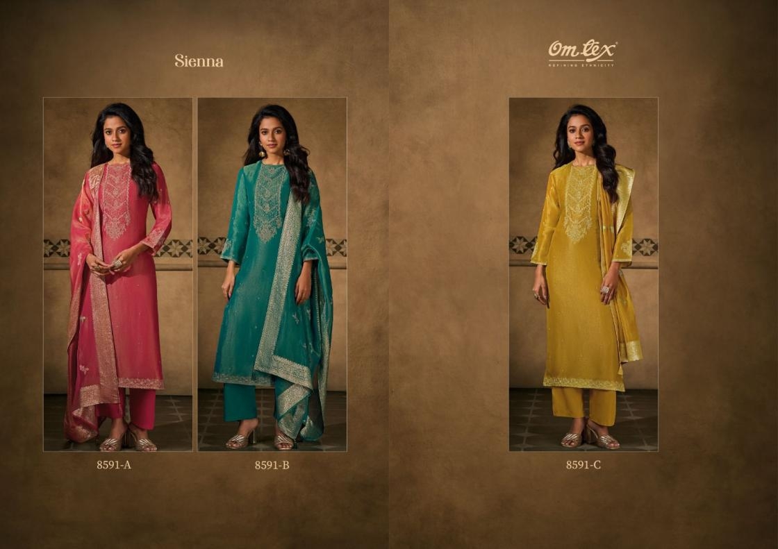 buy omtex launch sienna series 8591A to 8591C silk tissue pretty look suit in wholesale surat latest catalogue 2025