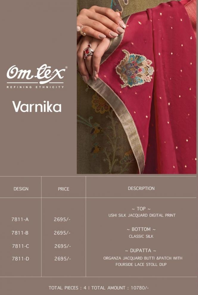 buy omtex varnika series 7811A to 7811D ushi silk jacquard suit in wholesale surat latest catalogue 2025