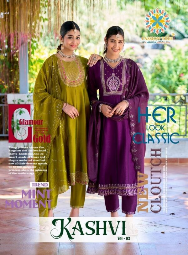 buy passion tree kashvi vol 3 series 3001 to 3008 fully stitch vichitra silk anarkali plus size suits in wholesale surat latest catalogue 2025